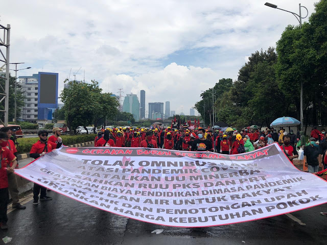 The Gebrak alliance organized the protest action in several major cities in Indonesia. The protesters decided to organize the rally despite being aware of the infection risk. “The government and the lawmakers keep insisting to pass on the bill. With this, working people are forced to risking their life to protest the Omnibus Law. Both are taking advantage of the situation where most people are facing hardship,” said GEBRAK’s spokesperson Ilhamsyah.